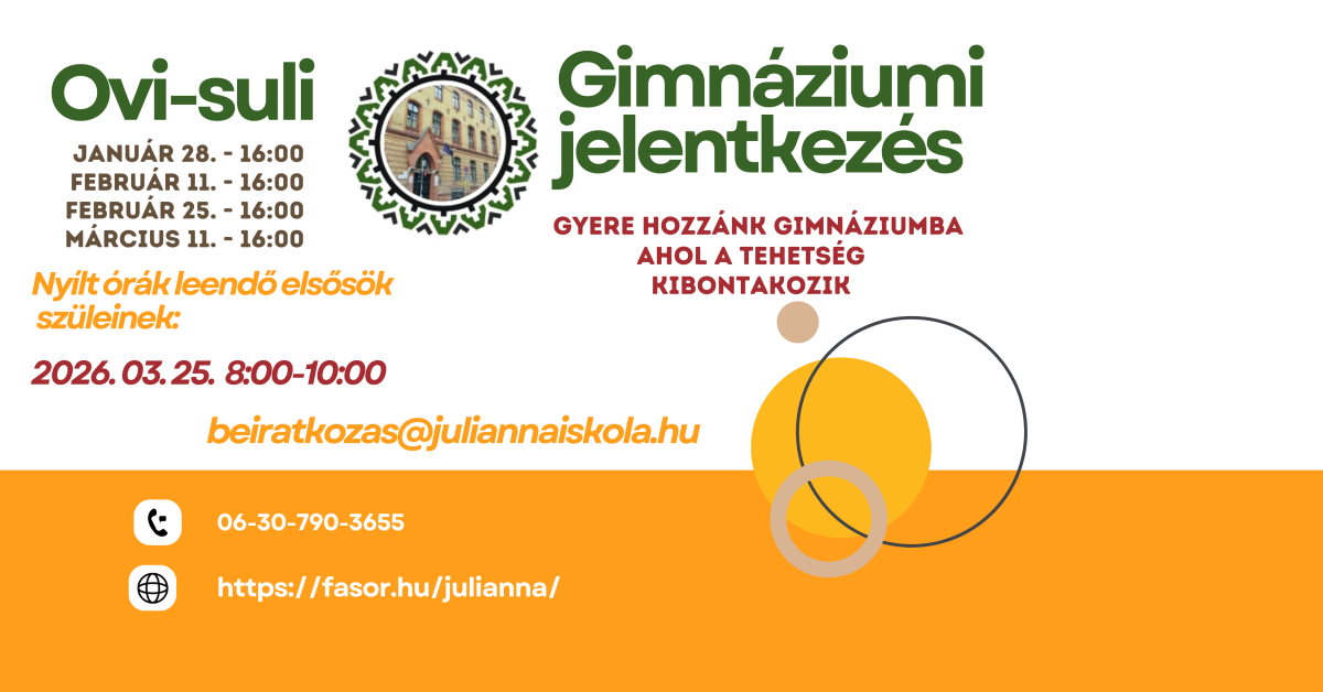 Iskolánk sok szeretettel várja a leendő gimnáziumi osztályba jelentkező tanulókat