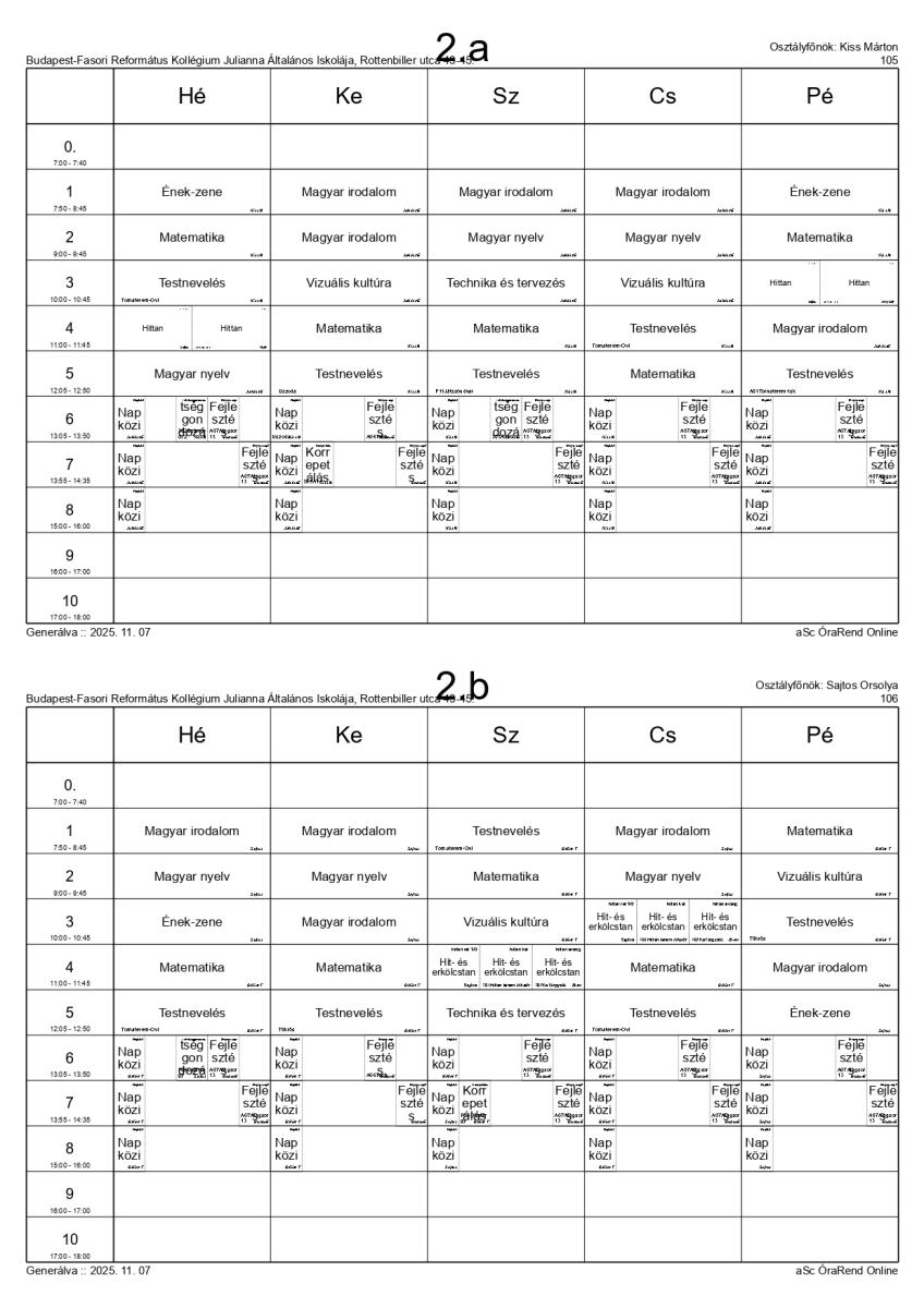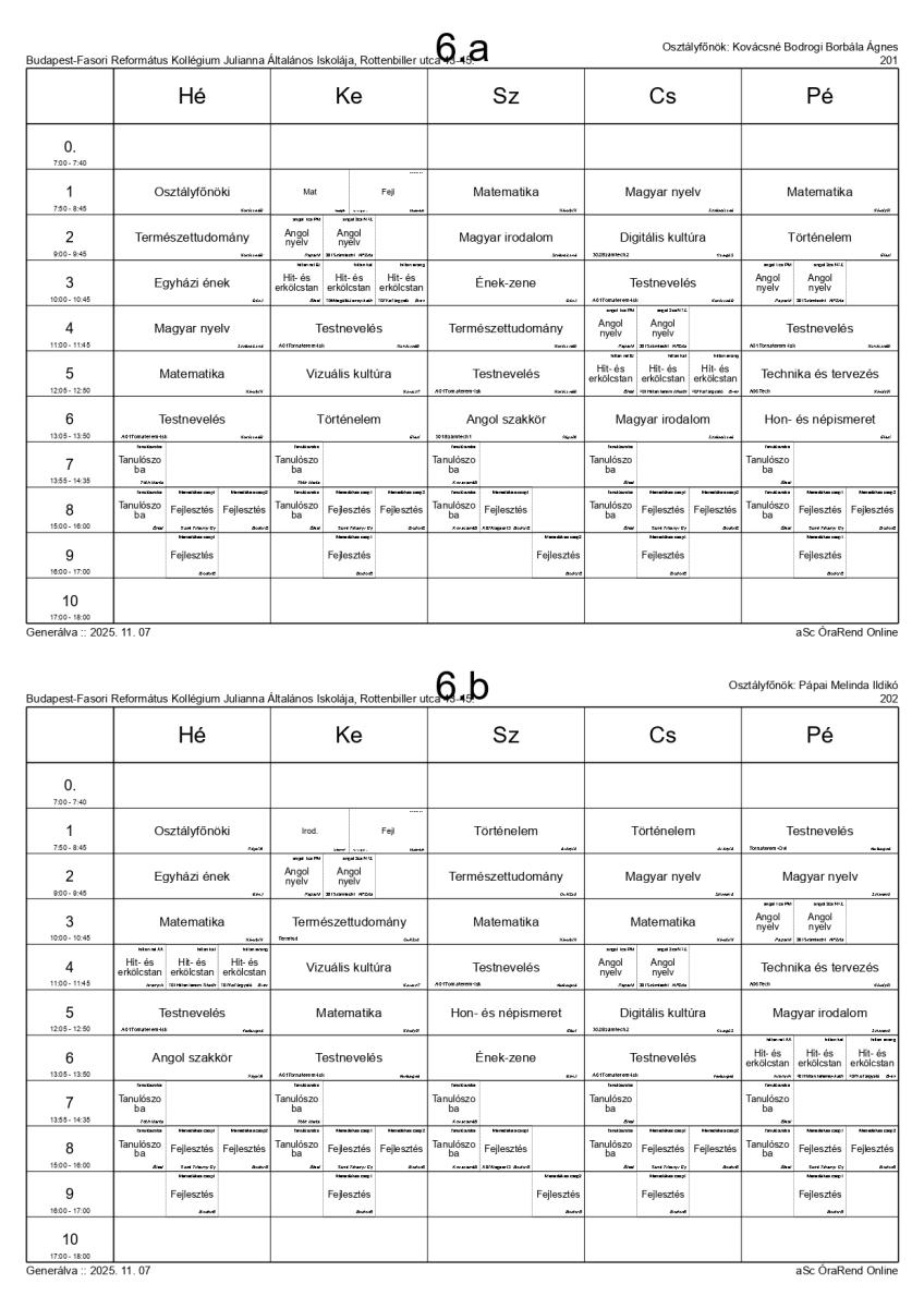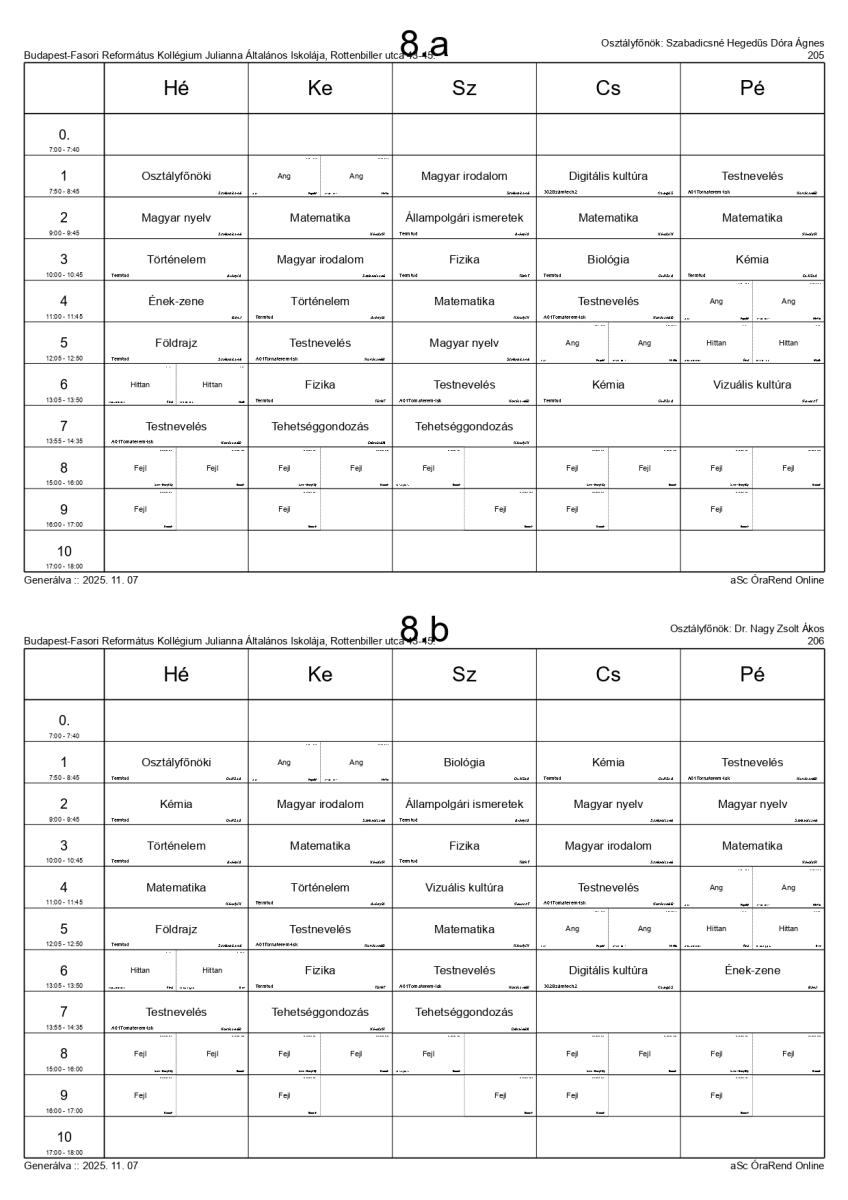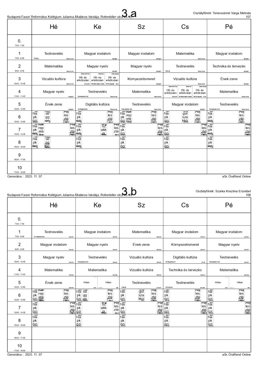 Az osztályok órarendjeit a számokra kattintva (évfolyamonként) tekinthetik meg.