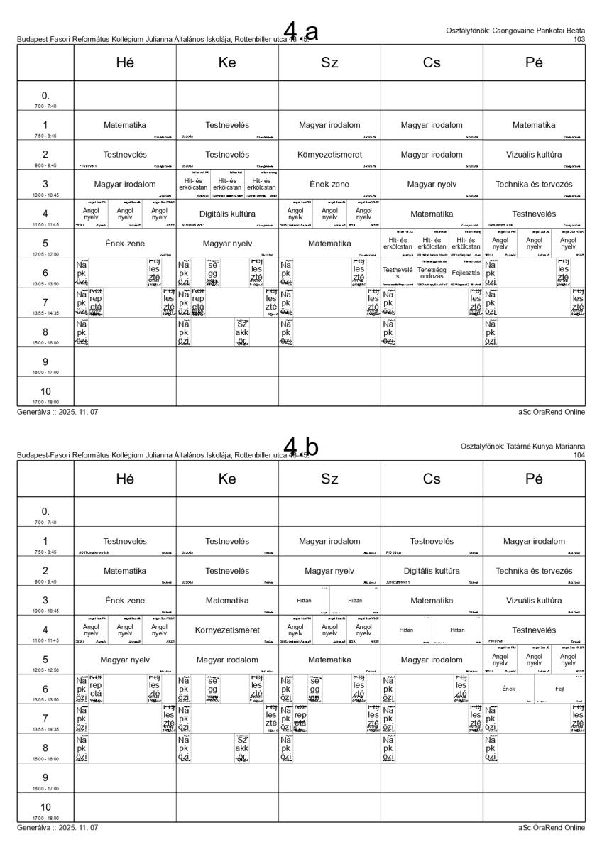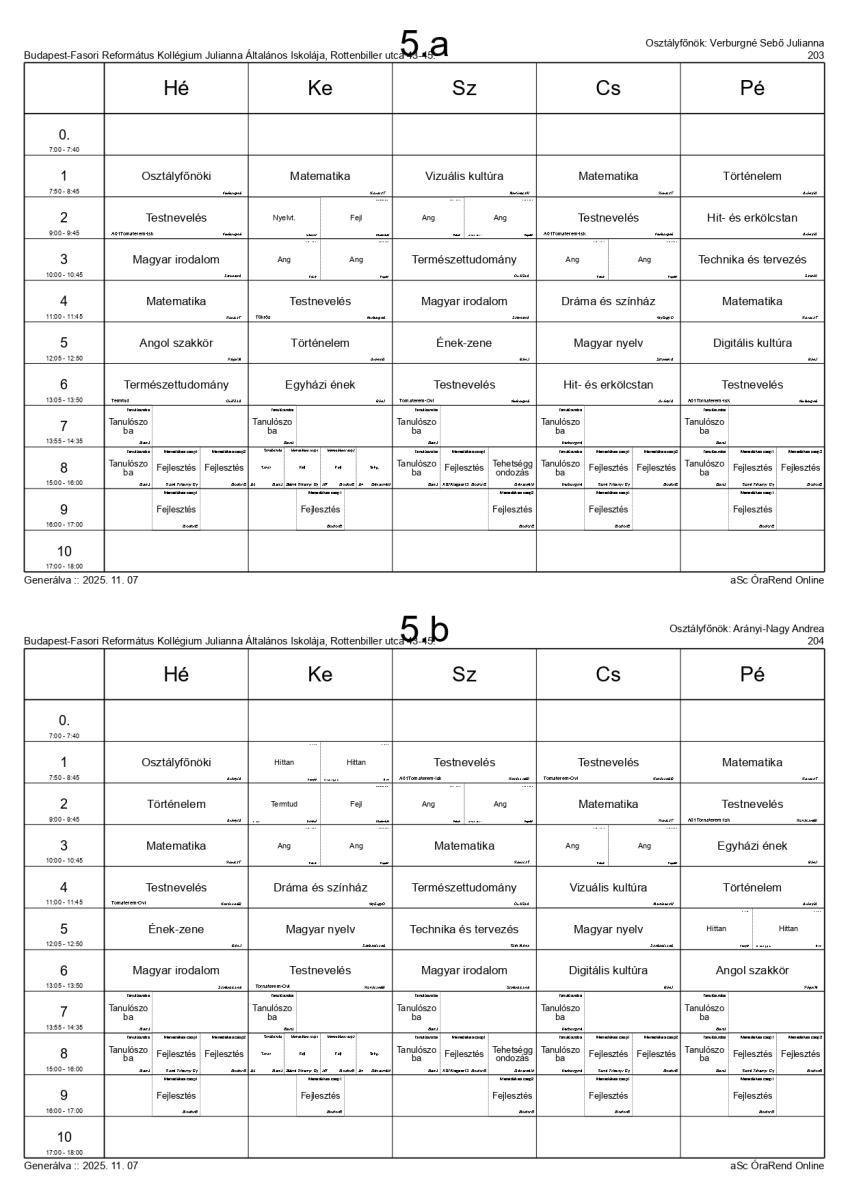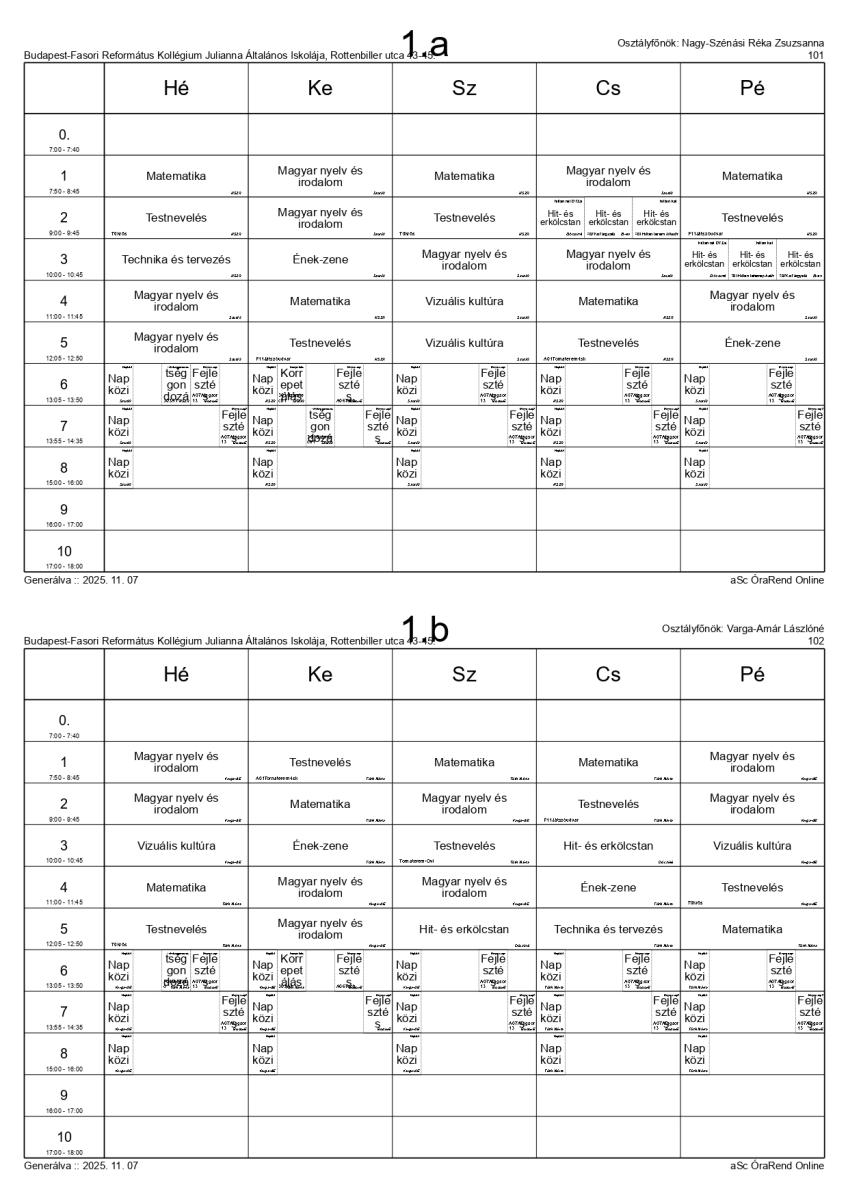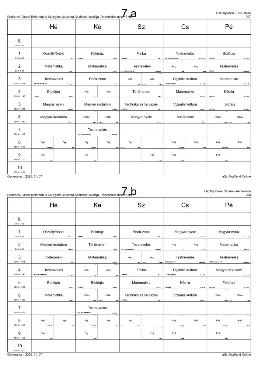 Az osztályok órarendjeit a számokra kattintva (évfolyamonként) tekinthetik meg.