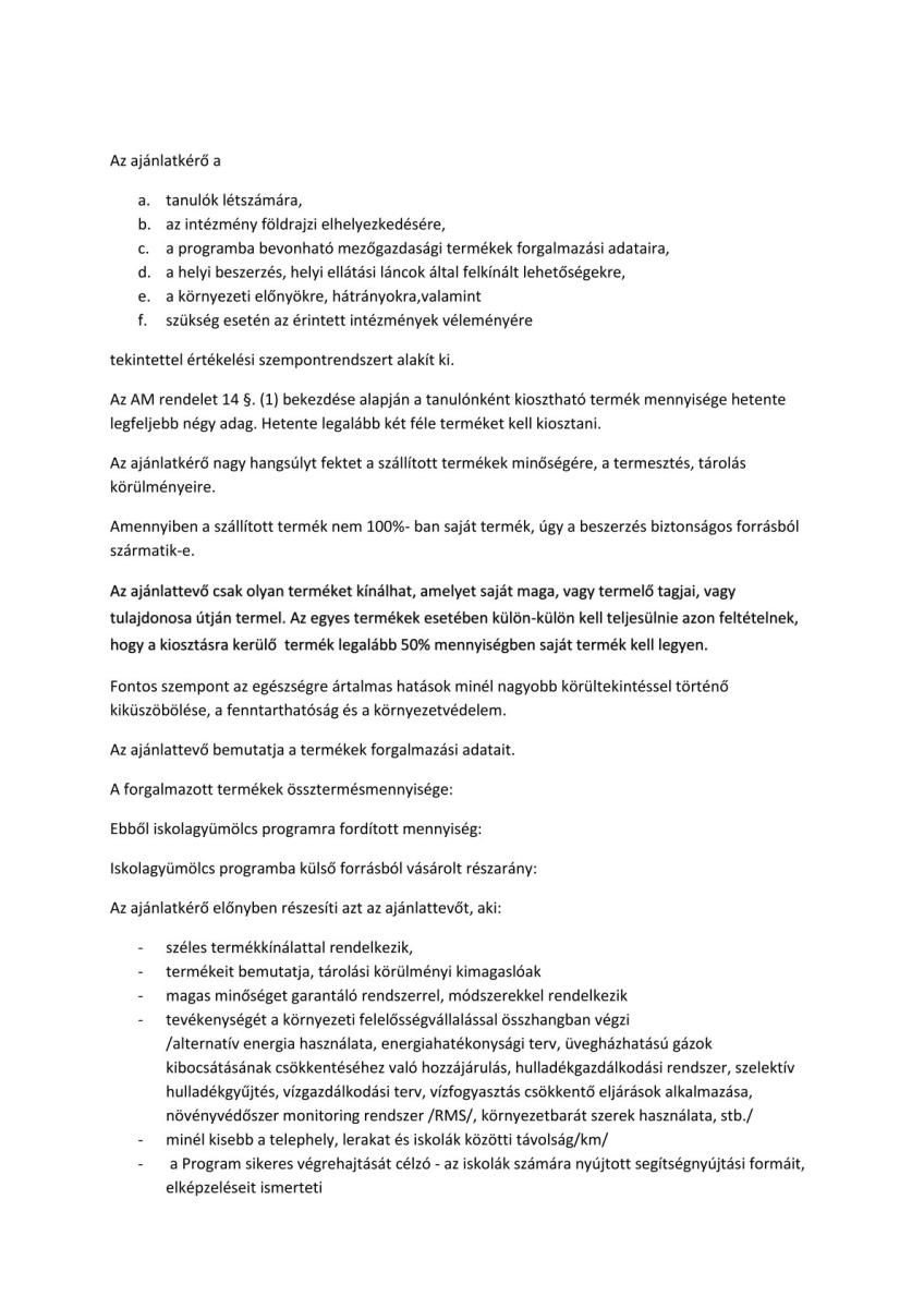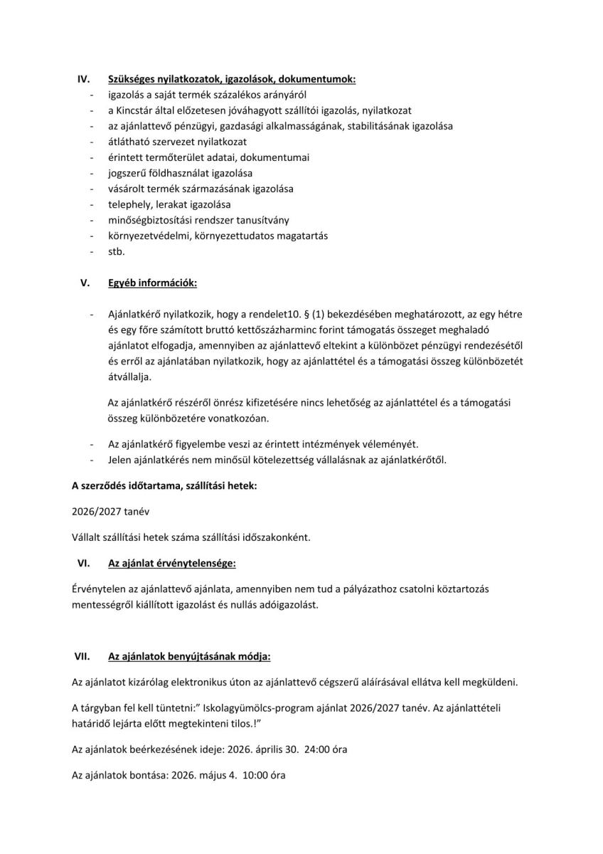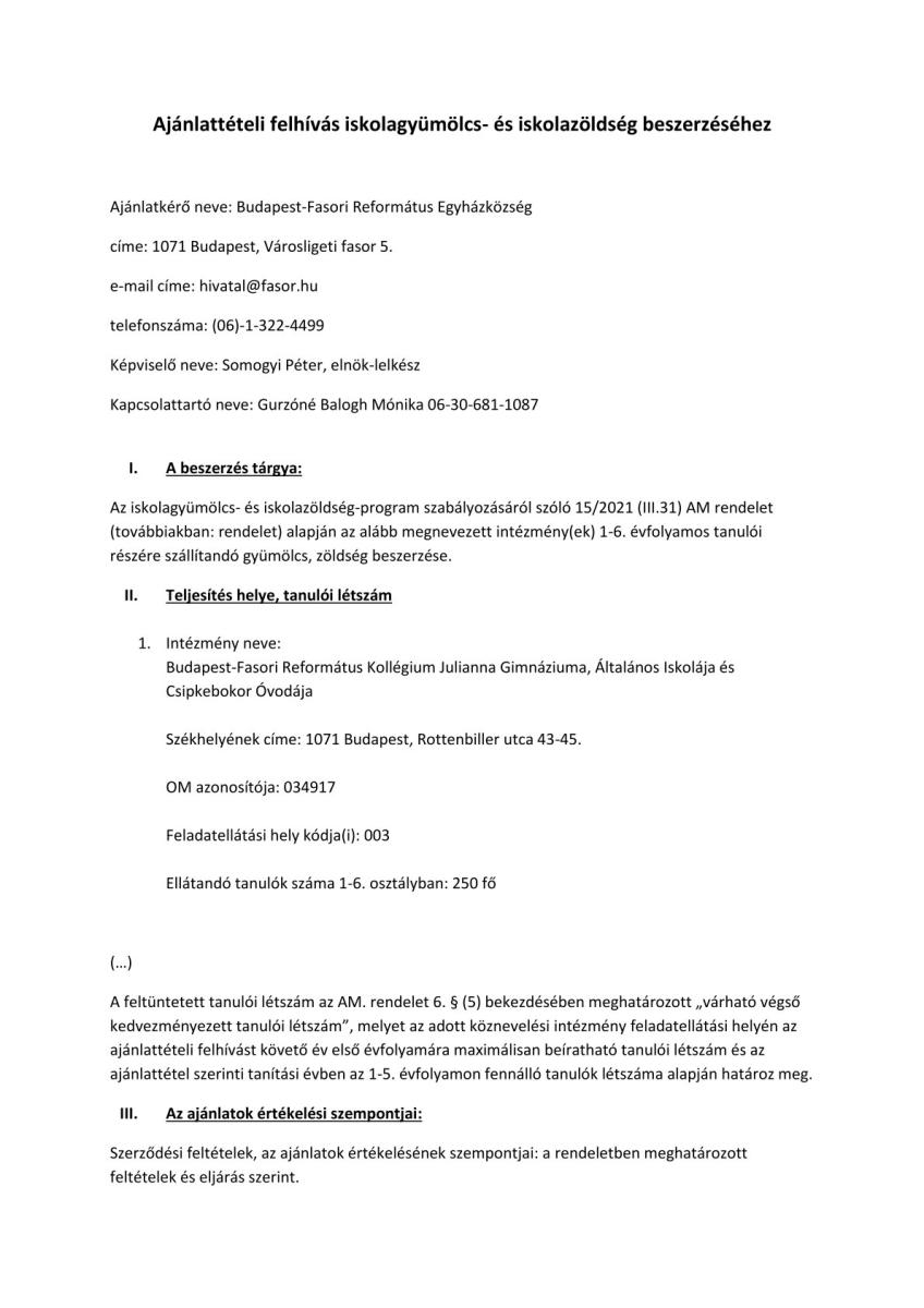 Ajánlattételi felhívás az iskolagyümölcs- és iskolazöldség-program szabályozásáról szóló 15/2021 (III.31) AM rendelet alapján az 1-6. évfolyamos tanulók részére szállítandó gyümölcs, zöldség beszerzéséhez.